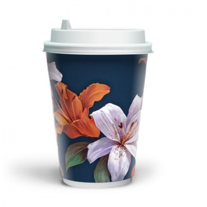 Стакан 350мл. бумажный одноразовый двухслойный ЦВЕТЫ 1/20/400